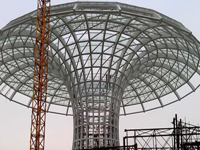 二、球形网架结构因其结构新颖,受力合理,自重轻、用钢量低等优点。如大型体育场馆球形河东螺栓球网架、公共场馆球形网架、电厂河东螺栓球网架、水泥工业球形网架、仓储物流球形网架、河东干煤棚工业球形网架、河东收费站河东加油站球形网架、展览中心、影剧院、商场、航站楼、候车厅、工厂河东车间、仓库、电视塔等球形螺栓球节点网架。国内球形网架结构主要分为:河东焊接球节点网架及螺栓球节点网架两种。螺栓球节点网架其构件工厂内加工量较大,现场安装便捷,适用于现场工期紧,河东施工条件、用电量受制约,网架形状复杂、河东杆件定位困难的异形结构。螺栓球节点球形网架系统基本由河东杆件、螺栓球、支撑支座等组成。按照节点形式可分为交叉河东桁架体系、四角锥体系、三角锥体系等。支撑方式多为固定支座支撑。对于大面积、大跨度及有特殊受力或伸缩要求的网架结构可采用橡胶支座、滑移支座、球铰支座等支撑形式,以满足结构自身的受力稳定、均衡,便于内力释放等设计要求。